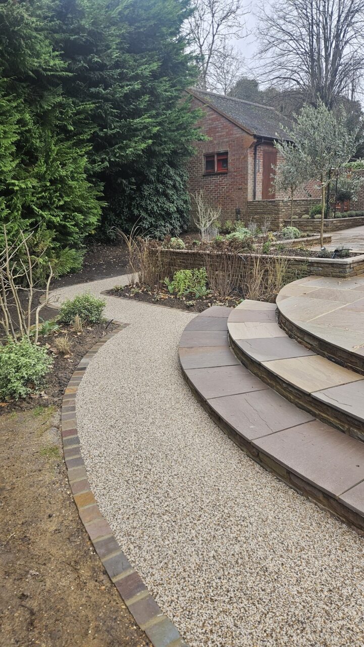 Careful attention was paid to levels and detailing, ensuring the pathway flowed naturally through the garden while maintaining functionality and accessibility.